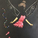 Hinterlegt wurden hier leere Nespresso Kapseln. Teilweise sind die Bilder bestickt und mit Perlen verziert.